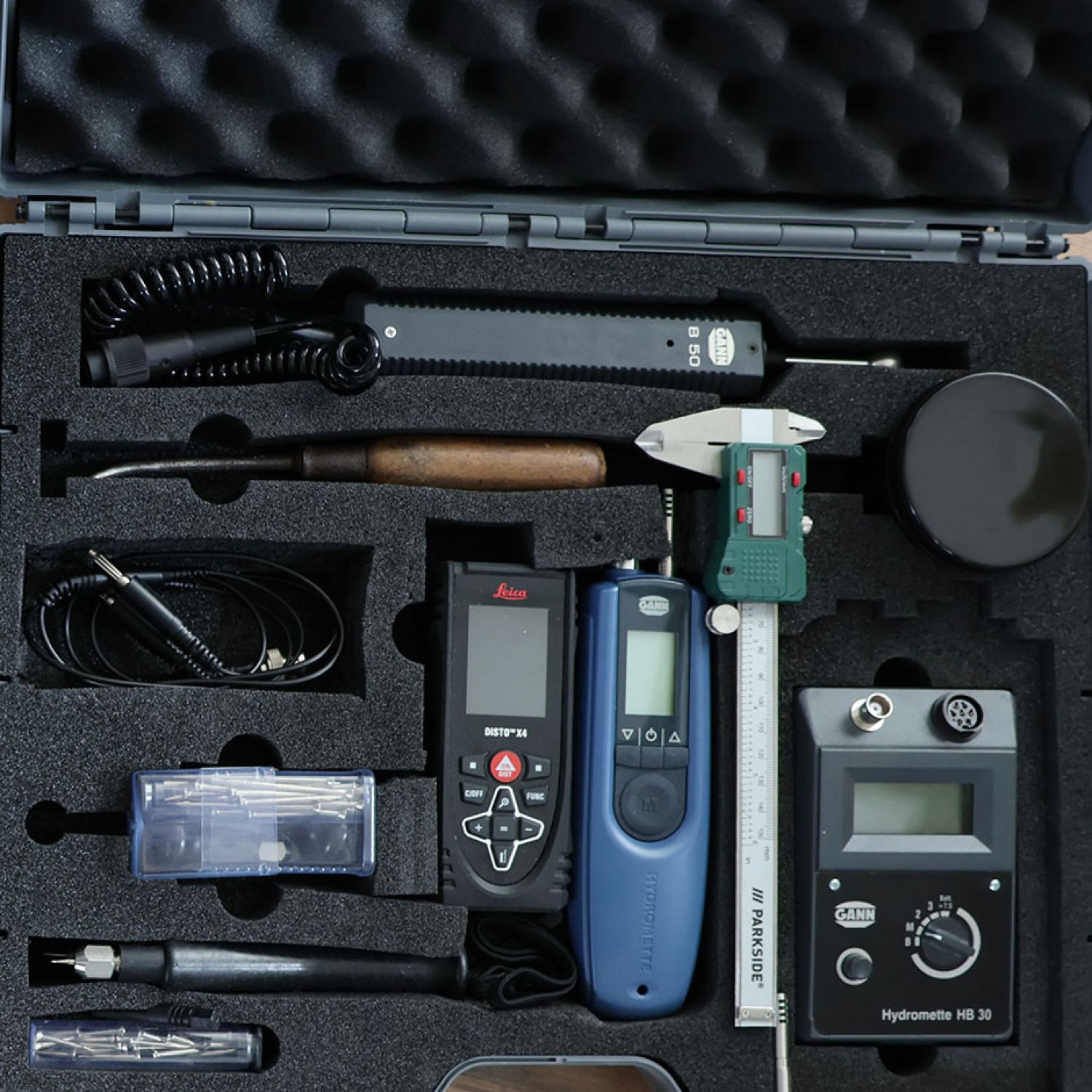 Um diese Ursachen noch gezielter und nachvollziehbarer erkennen zu können, setzen wir zusätzlich auf die Bau-Forensik. Die optische Bau-Forensik (OBF) nutzt bildgebende optische Verfahren mit speziellen Lichtquellen, Filtern und Kameras, um verdeckte Spuren und Schäden sichtbar zu machen, die bei normaler Beleuchtung nicht erkennbar sind, und hilft so bei der Ursachenklärung von Bauschäden.